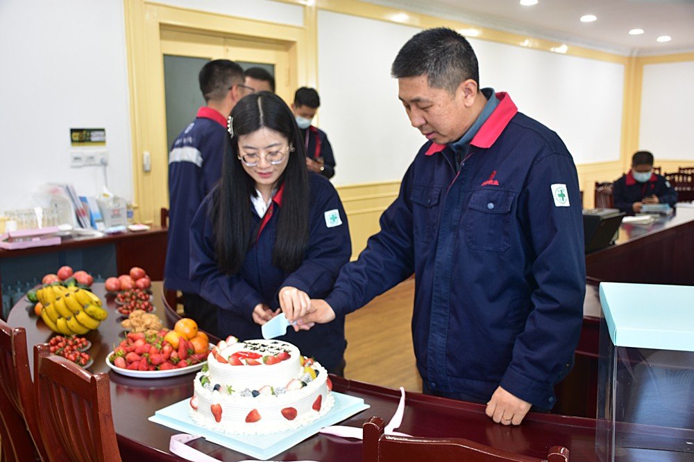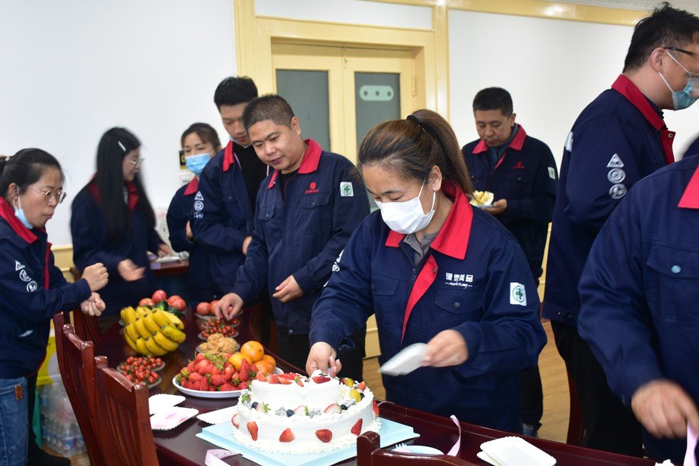 發言結束,李總為新官網搭建工作小組成員獻上花束,并與小組成員共切蛋糕,宣告新版官網正式上線,并邀請在場全體同事一起品嘗,共同分享這份喜悅。